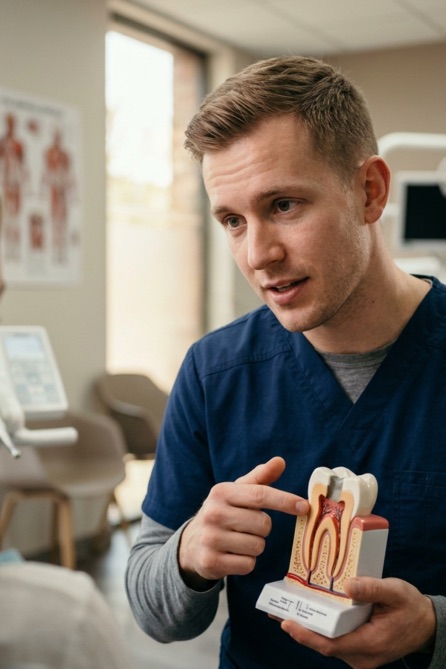 Мы уделяем внимание точной диагностике, сохранению зубов и понятному общению с пациентом. Врач подробно объясняет ситуацию, возможные варианты лечения и отвечает на все интересующие вас вопросы.