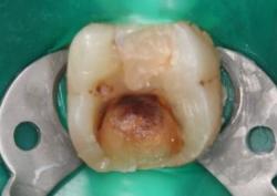 повышенная чувствительность к холодному, потемнение на жевательной поверхности зуба.