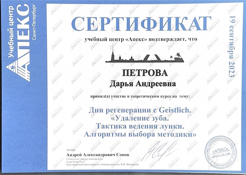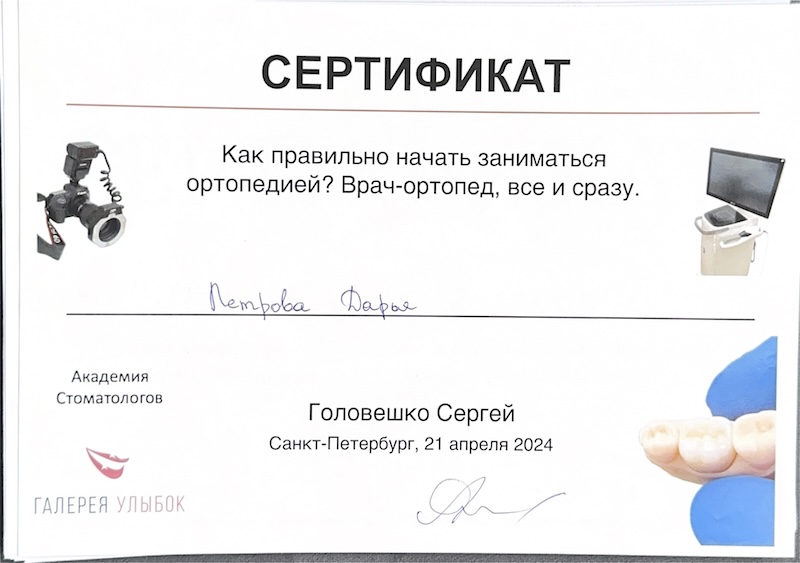 - ФГБУ «НМИЦ им. В.А. Алмазова» Минздрава России (врач-стоматолог-ортопед).