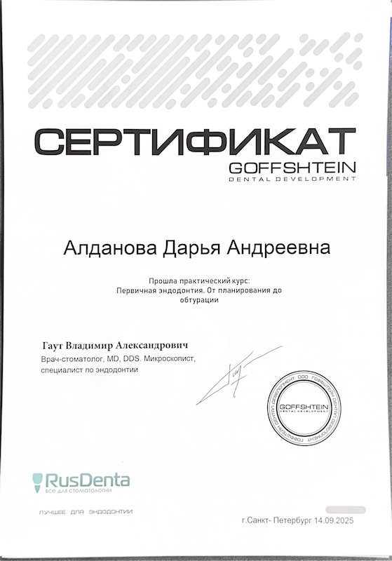 Стаж работы в стоматологии с 2020 года