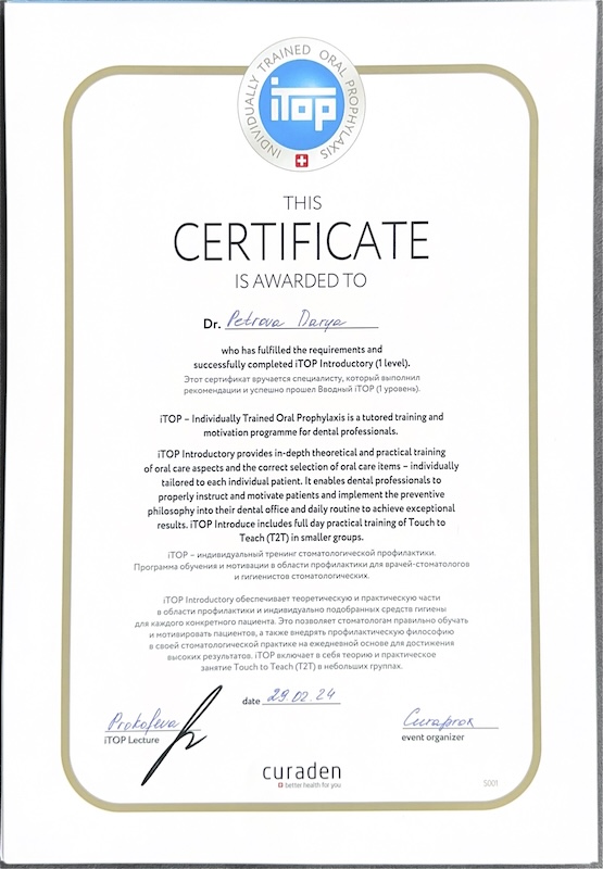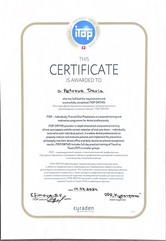 Моя задача — не только качественно вылечить зуб, но и сделать визит к стоматологу комфортным. Я всегда уделяю время общению: подробно рассказываю о ходе лечения, показываю фотографии, отвечаю на вопросы, чтобы вы чувствовали себя уверенно.