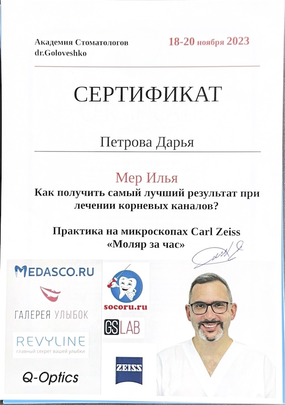- лечу кариес и его осложнения (пульпит, периодонтит) с использованием стоматологического микроскопа. Это даёт высокую точность, уверенность в результате и позволяет сохранить максимум здоровых тканей.