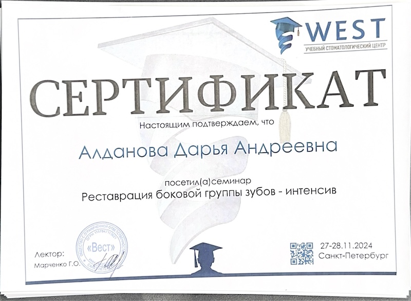 А также я регулярно учусь на курсах и мастер-классах, чтобы совершенствовать свои навыки и применять самые современные методики.