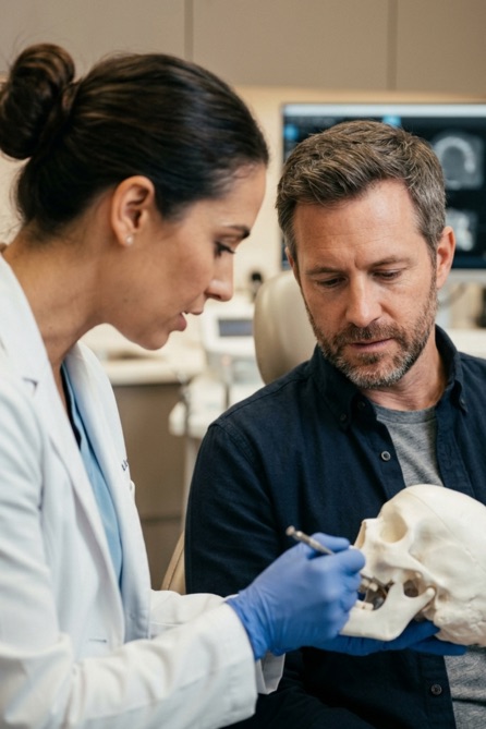 Часто гнатология нужна там, где обычный стоматологический осмотр дает слишком мало ответов. Например, зубы внешне здоровые, а человеку неудобно смыкать, он постоянно ищет положение челюсти и устает от жевания. Или наоборот: человек пришел «только за винирами», а врач видит сильную стираемость и понимает, что без проверки сустава и прикуса красивые реставрации будут в зоне риска.