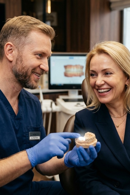 Ортопедическое лечение почти всегда требует логики и последовательности. Иногда до ортопеда нужно пролечить кариес у терапевта, стабилизировать десны, провести профессиональную гигиену. А если планируется протезирование на имплантах, ортопед работает в связке с хирургом-имплантологом: один создает опору, другой отвечает за точную и комфортную конструкцию.