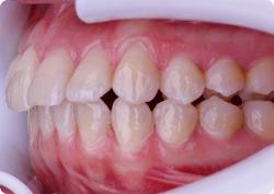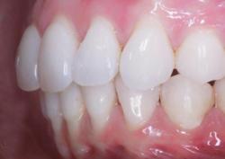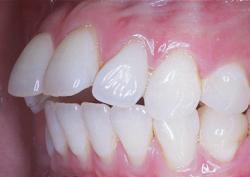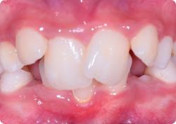 При таком нарушении верхняя челюсть значительно выступает вперёд по отношению к нижней.